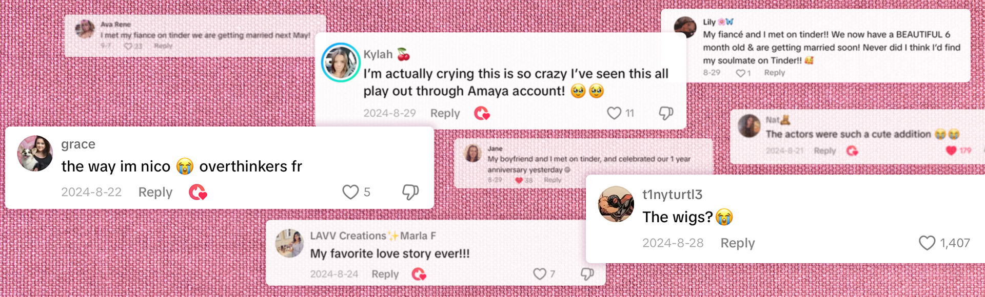 Tinder sparks a new relationship every 3 seconds—impressive, right? Yet, modern daters remain skeptical. To give them hope, we launched a series where real, successful Tinder couples recount their meet-cute stories while influencers reenact the highlights in a Drunk History meets Nora Ephron fashion.